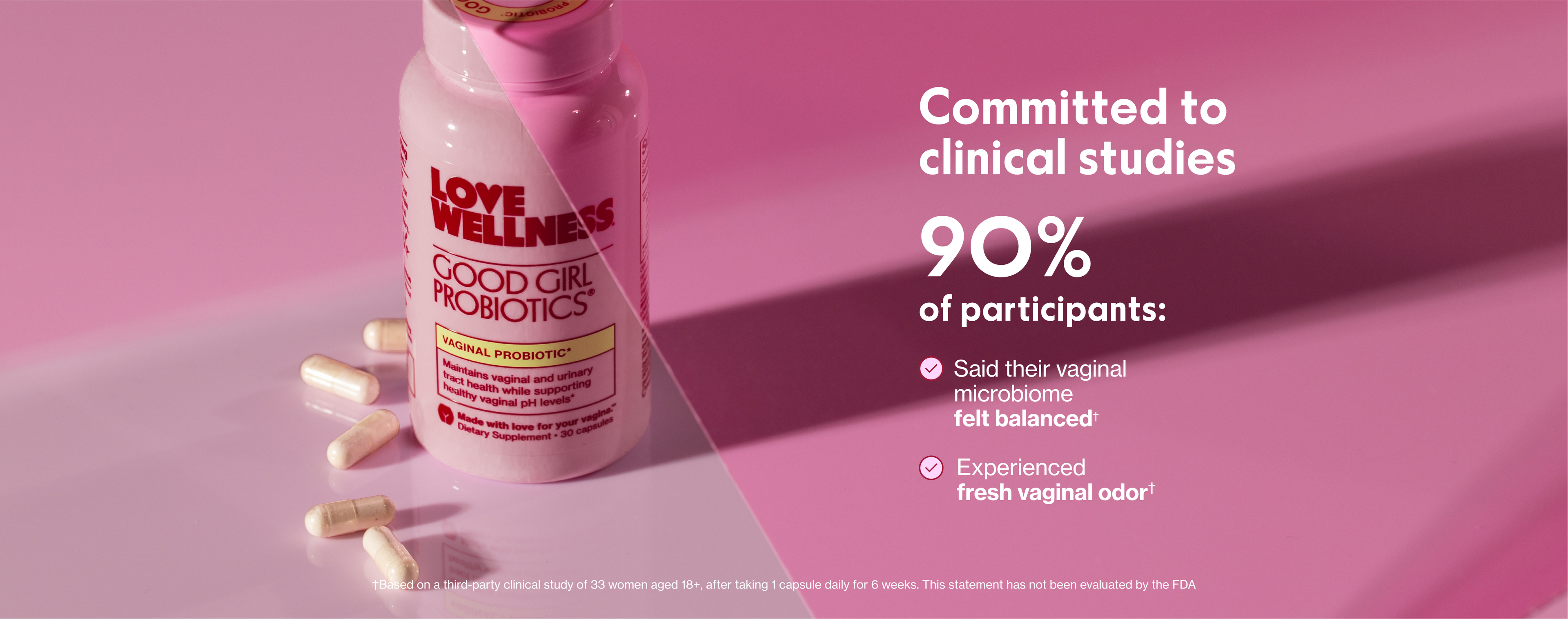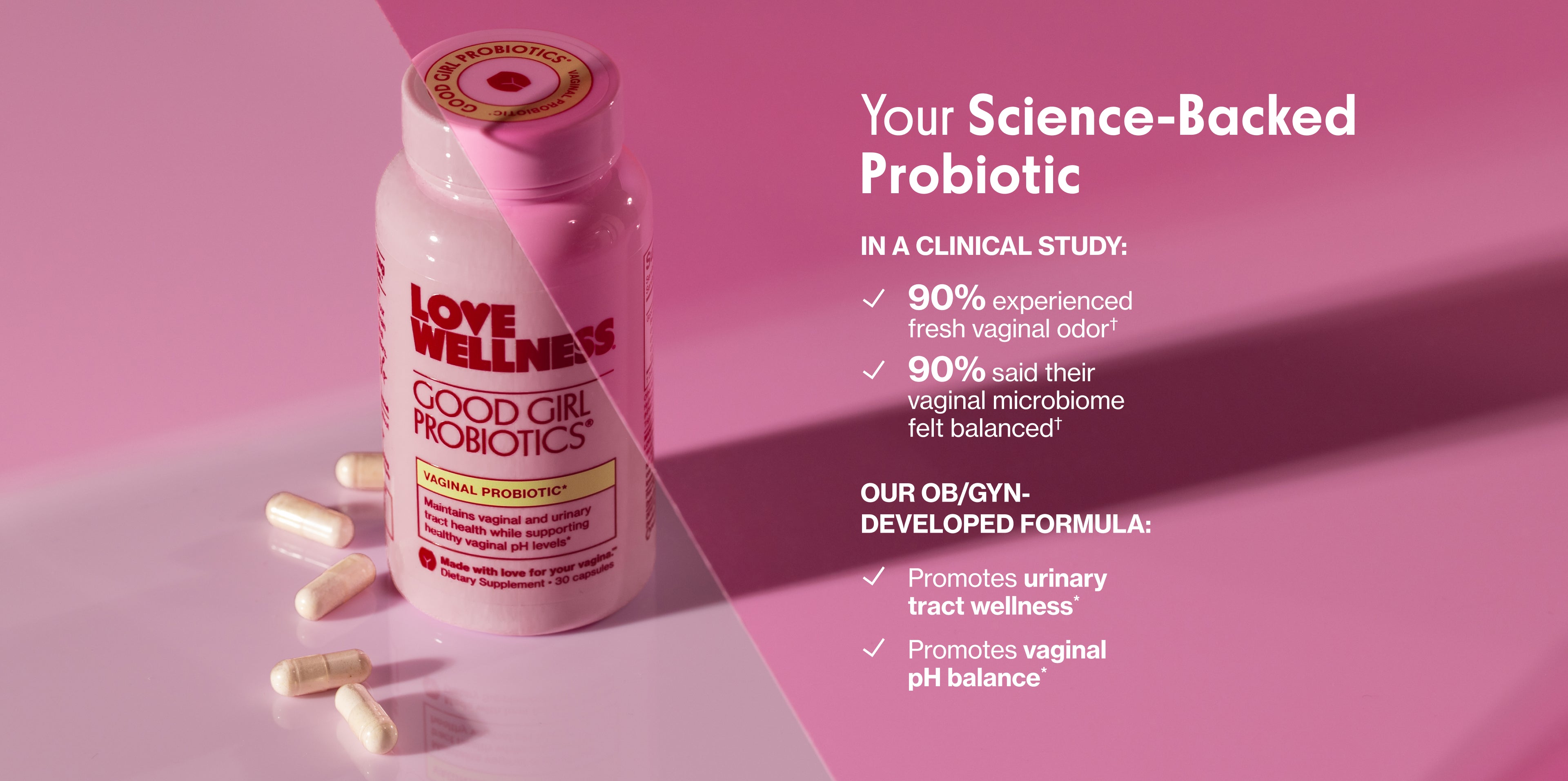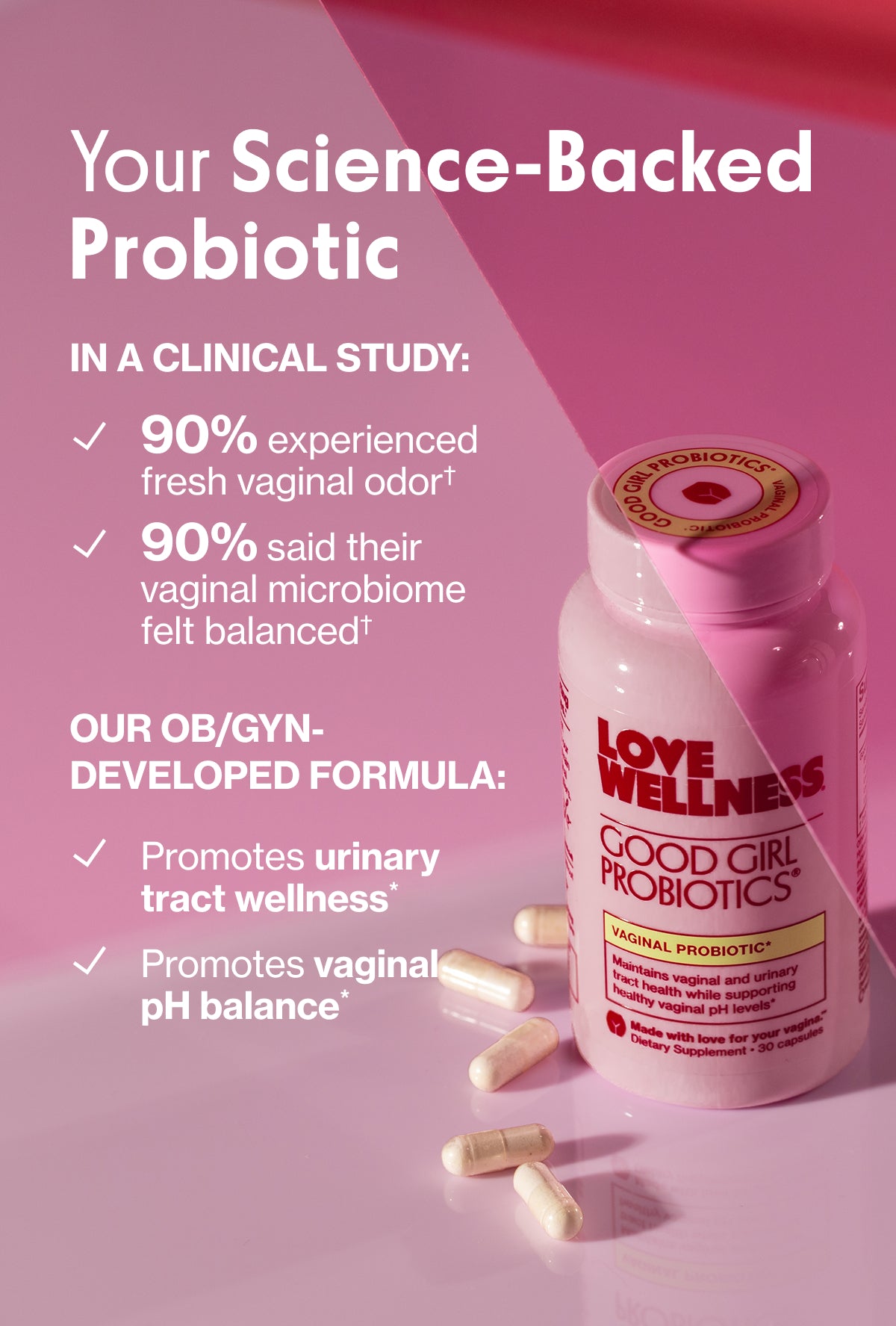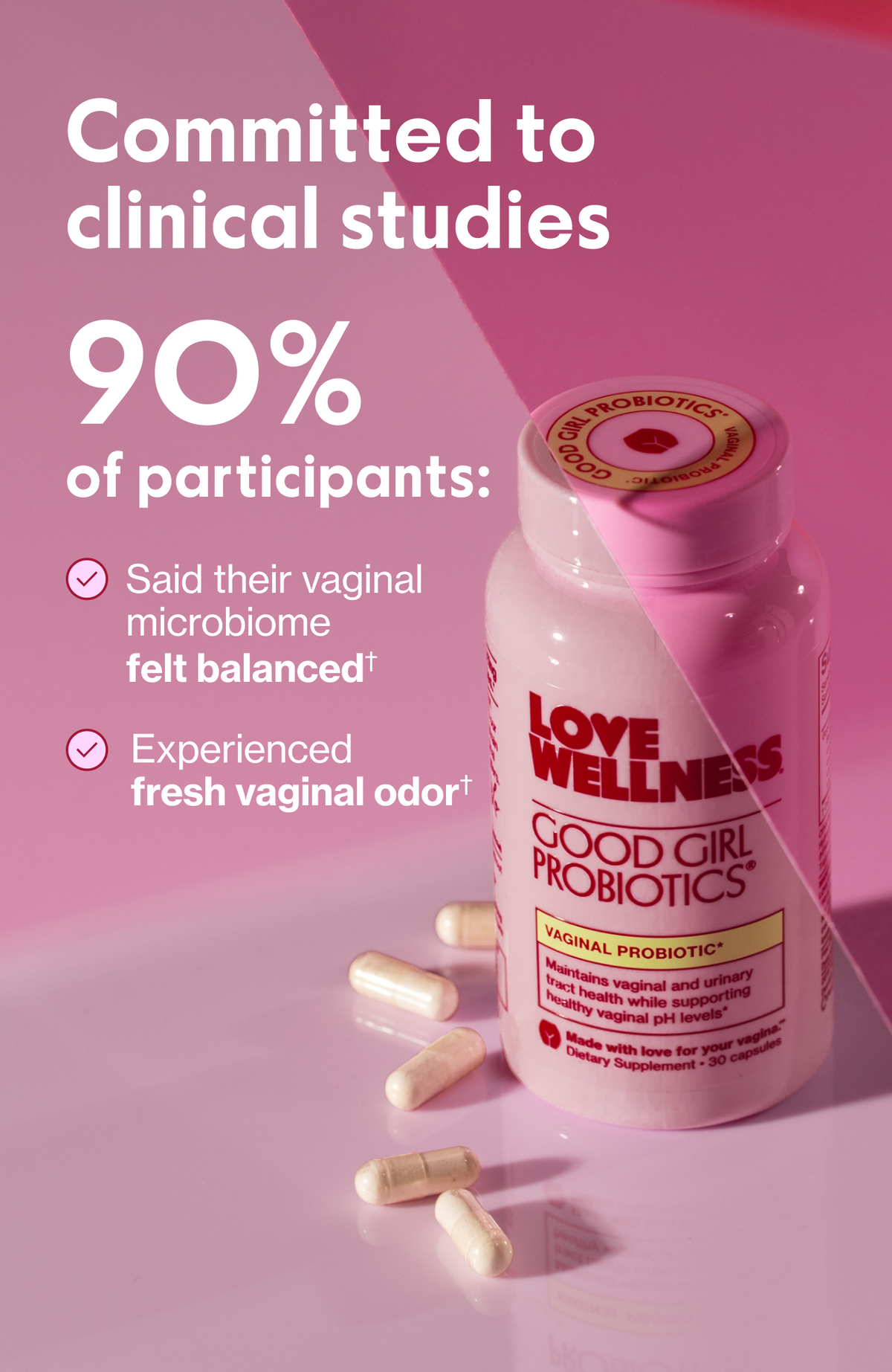 **Survey of 60 Love Wellness customers who have subscribed to Good Girl Probiotics for 6+ months. This statement has not been evaluated by the FDA.