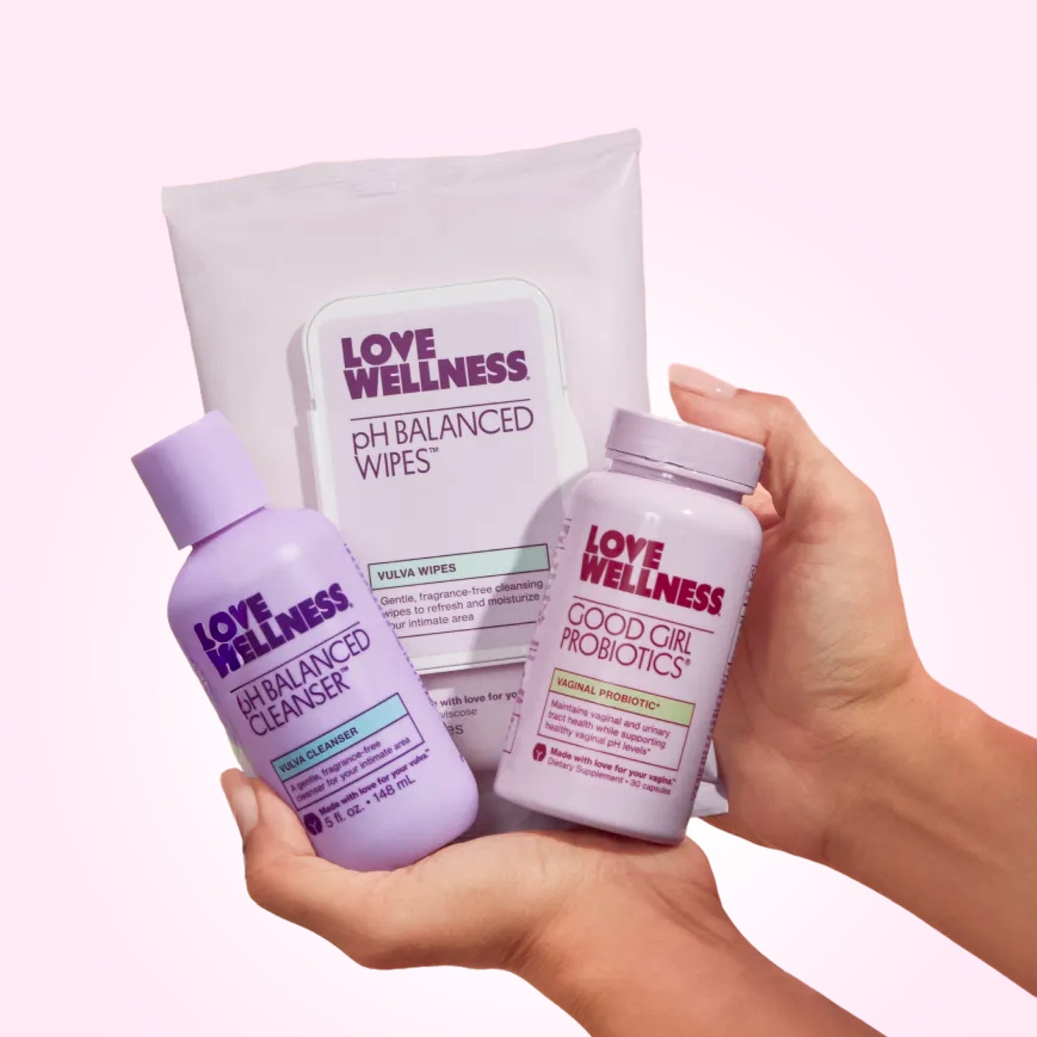 We like to take Good Girl Probiotics® with breakfast, pH Balanced Wipes™ whenever we’re on the go, and pH Balanced Cleanser™ with every shower—but feel free to incorporate our products in the order that helps you stay consistent!
