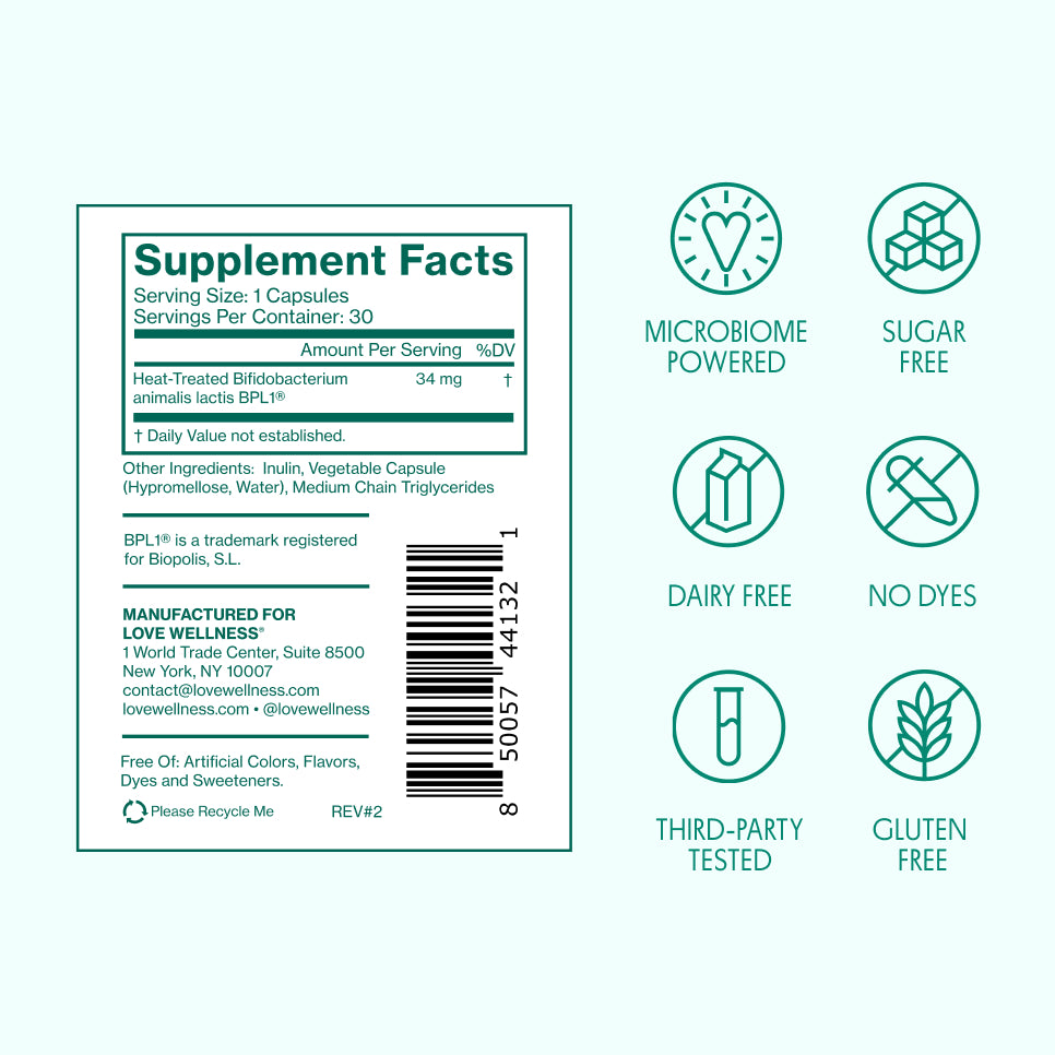 Supports healthy levels of visceral fat, fat metabolism and waist circumference reduction through the clinically studied postbiotic BPL1®.†